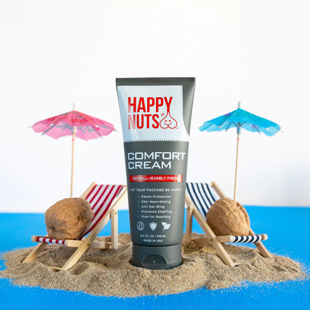 Met de Happy Nuts Comfort Cream geef je jouw kroonjuwelen vakantie en zeg je voorgoed vaarwel tegen zweet, schuurplekken en ongewenste geurtjes. De comfort cream breng je aan als een verfrissende lotion en droogt vervolgens op tot een zijdezachte, smeuïge poederlaag.