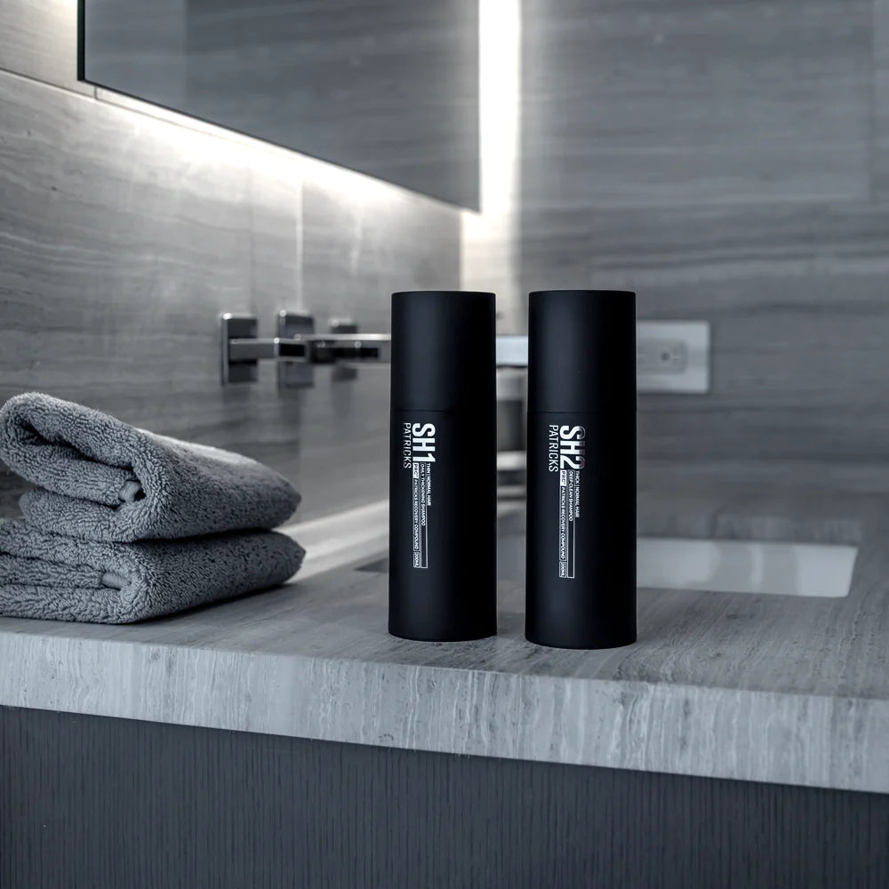 SH1 Daily Thickening Shampoo bevat Patricks Recovery Compound die zowel plantaardige als wetenschappelijk ontwikkelde ingrediënten van de hoogste kwaliteit en bewezen werkzaamheid combineert. De gecombineerde en synergetische werking van deze ingrediënten pakken direct haaruitval, haargroei, hoofdhuid en haargezondheid aan.